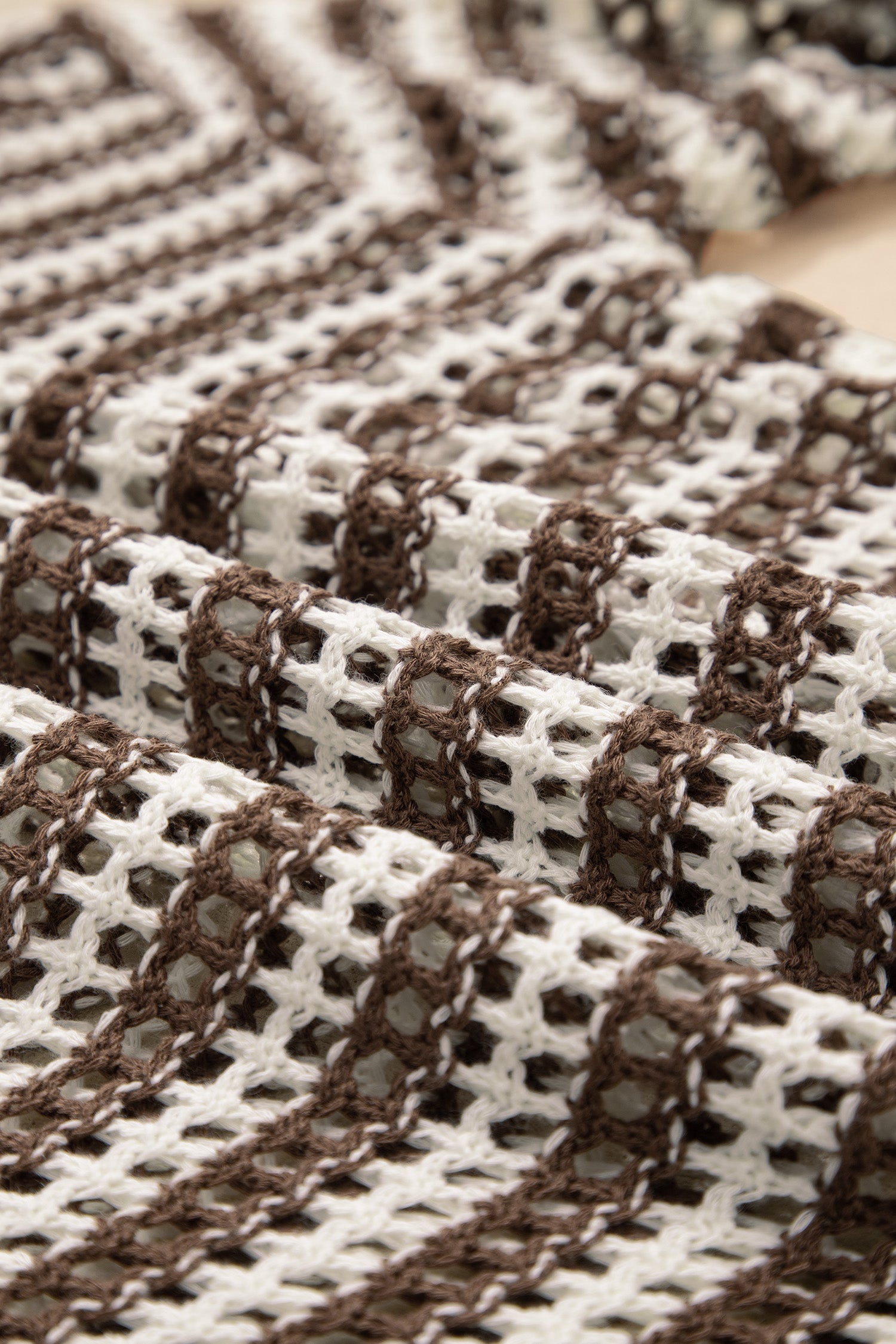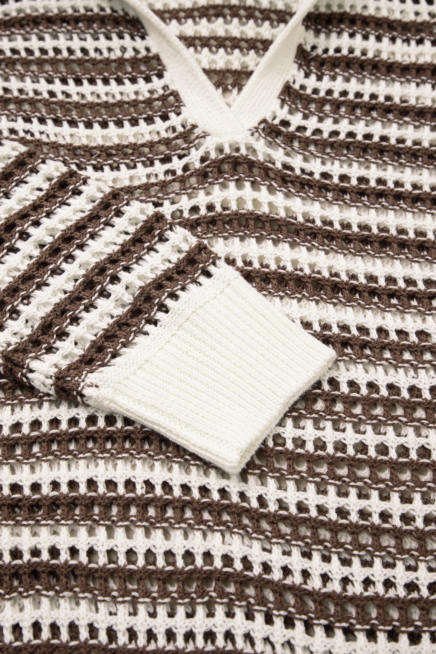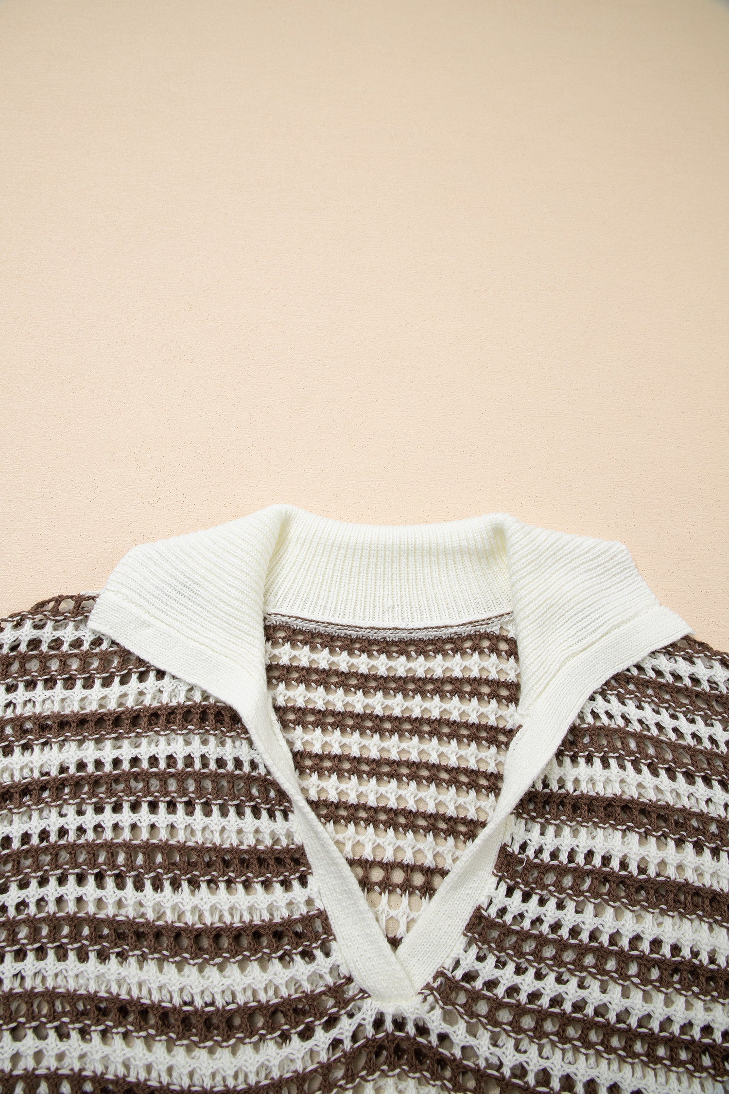 Brown Stripe Eyelet Hollow-out Contrast Collared Pullover Chic Sweater
